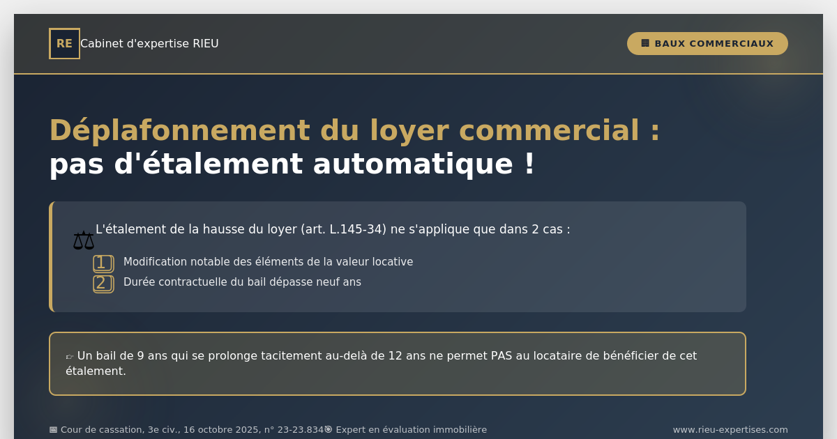 ⚖️ Un rappel utile pour les praticiens lors du renouvellement des baux commerciaux.
