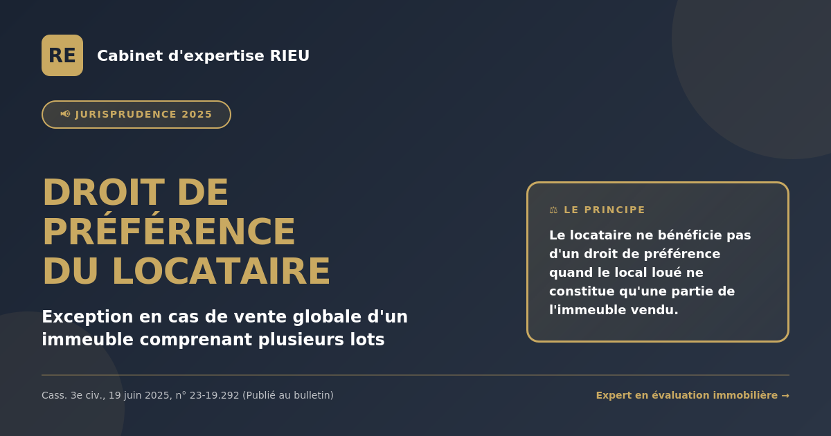 L’arrêt de la Cour de cassation du 19 juin 2025 confirme une interprétation extensive de l’exception au droit de préférence en cas de vente globale d’immeuble.
