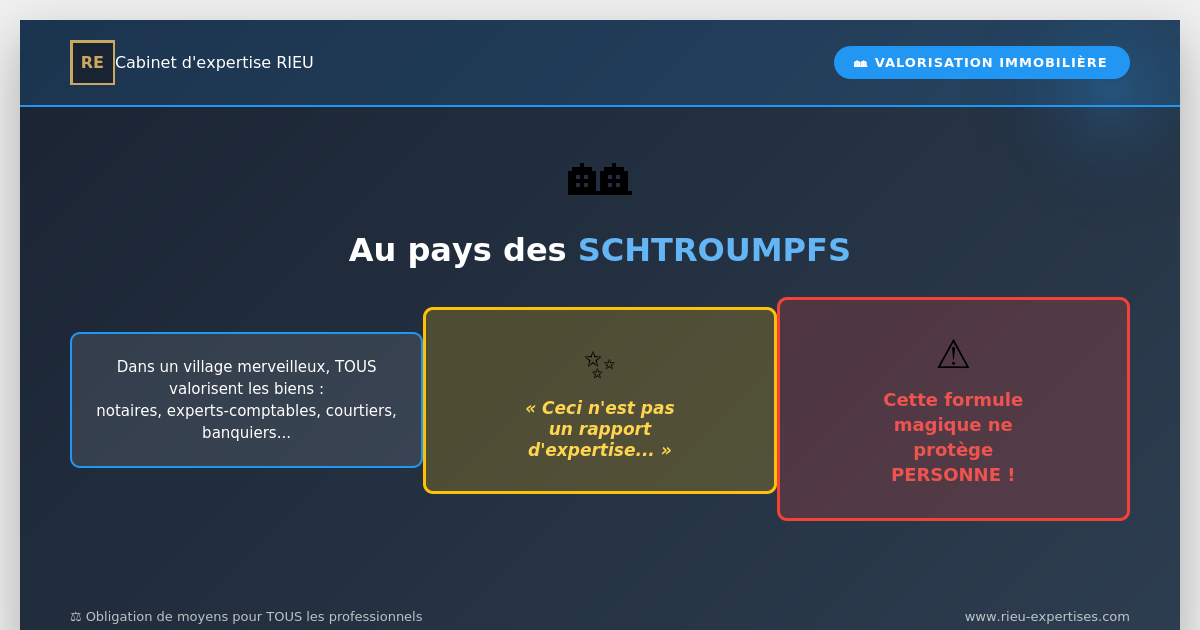 La métaphore du village des Schtroumpfs illustre une réalité : aucune formule magique ne protège les professionnels qui valorisent des biens immobiliers.